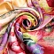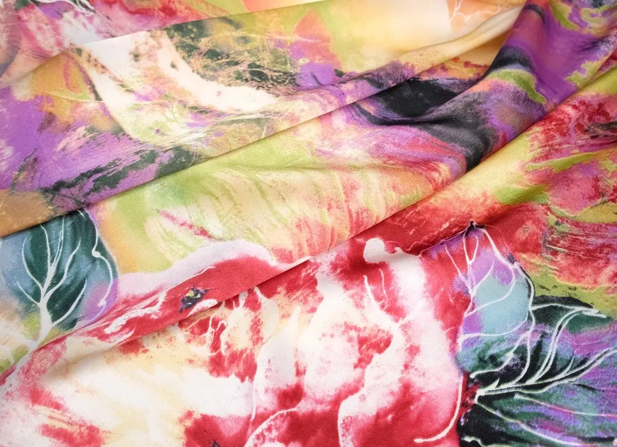 Ткань атлас с принтом розы крупные бордово-персиковый ш 1,1 (шелк 100%)