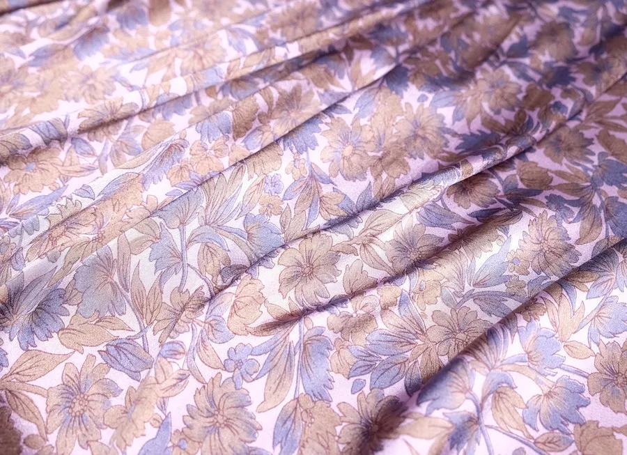 Ткань атлас с принтом цветы сине-фиолетовый ш 1,1 (шелк 100%)