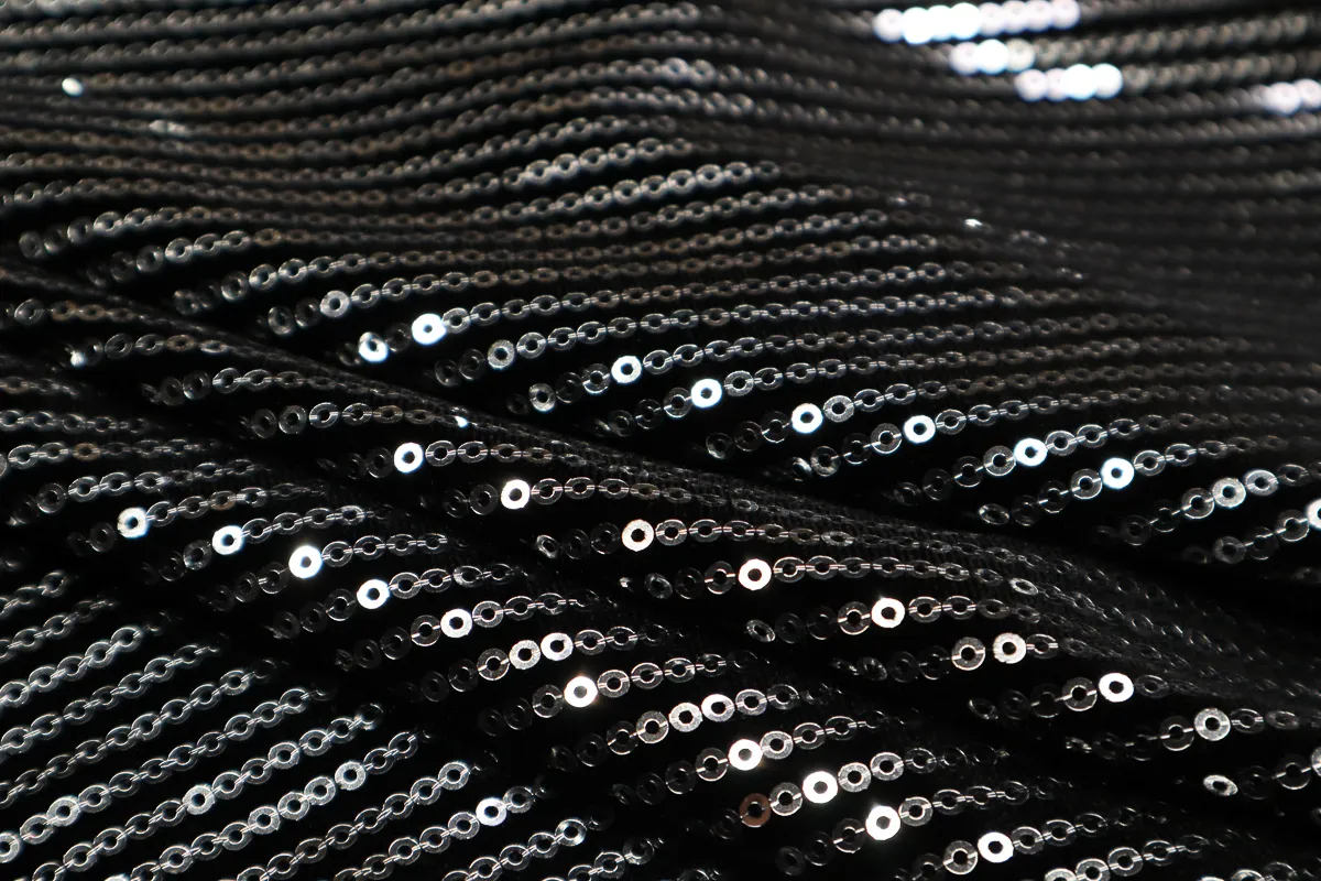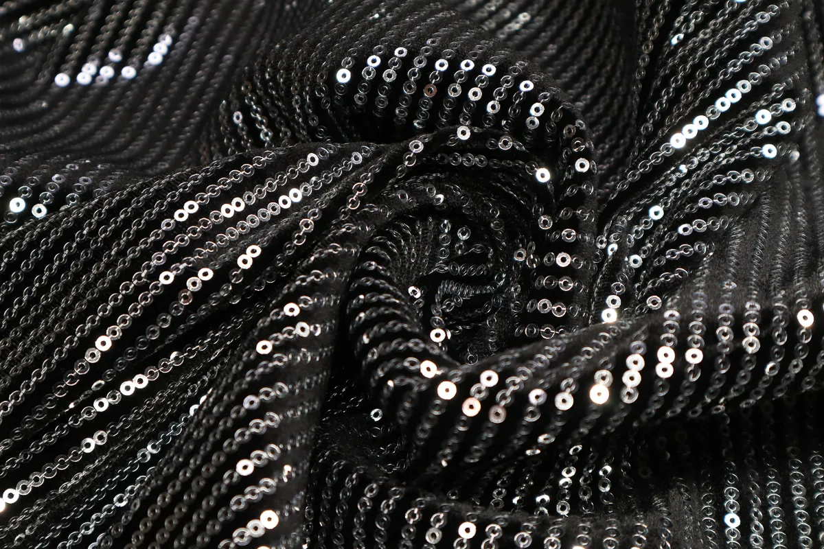 Ткань бархат с пайетками серебро-черный ш 1,5 (пэ 100%)