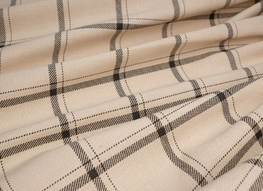 Ткань декоративная рогожка клетка бежевый ш 1,5 (хлопок 100%)