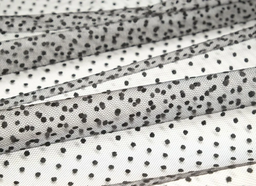 Ткань фатин горох черный ш 1,5 (пэ 100%)