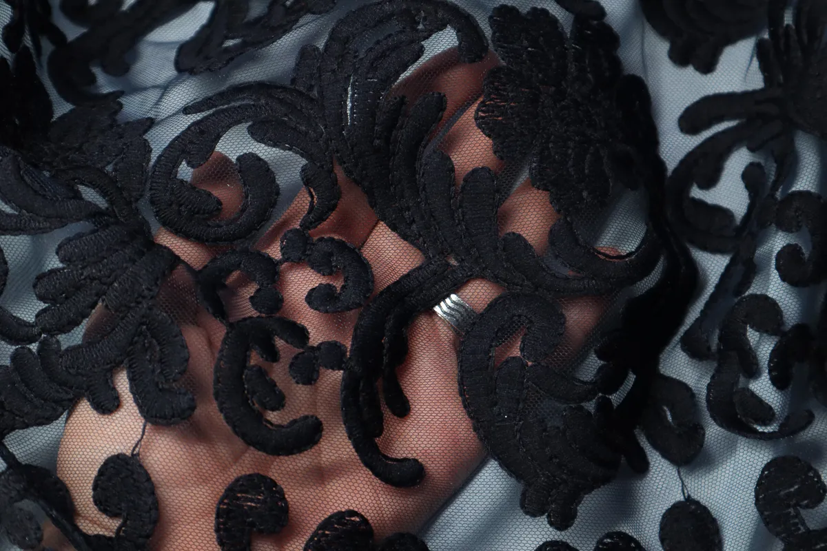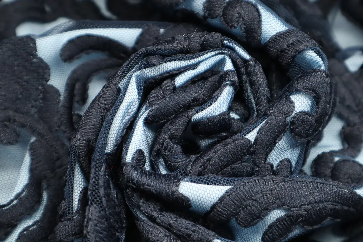 Ткань кружевное полотно "Натали" на сетке т.синий ш 1,35 (пэ 100%)