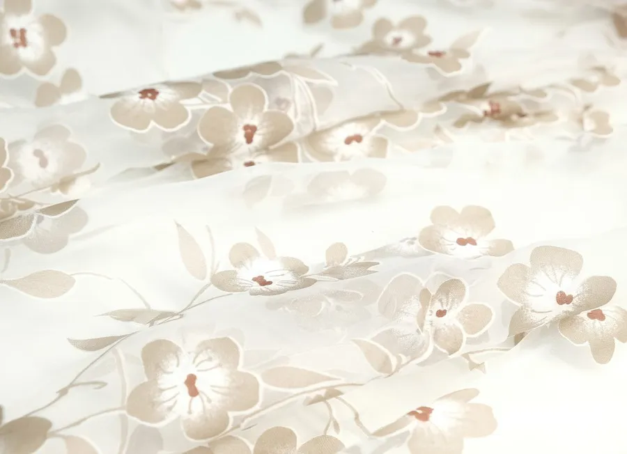Ткань органза-жаккард цветы коричневые белый ш 2,7 (пэ 100%)
