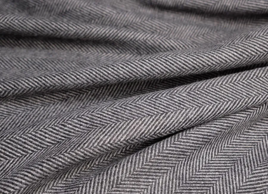 Ткань пальтовая елочка средняя серо-черный ш 1,5 (шерсть 65% пэ 35%)