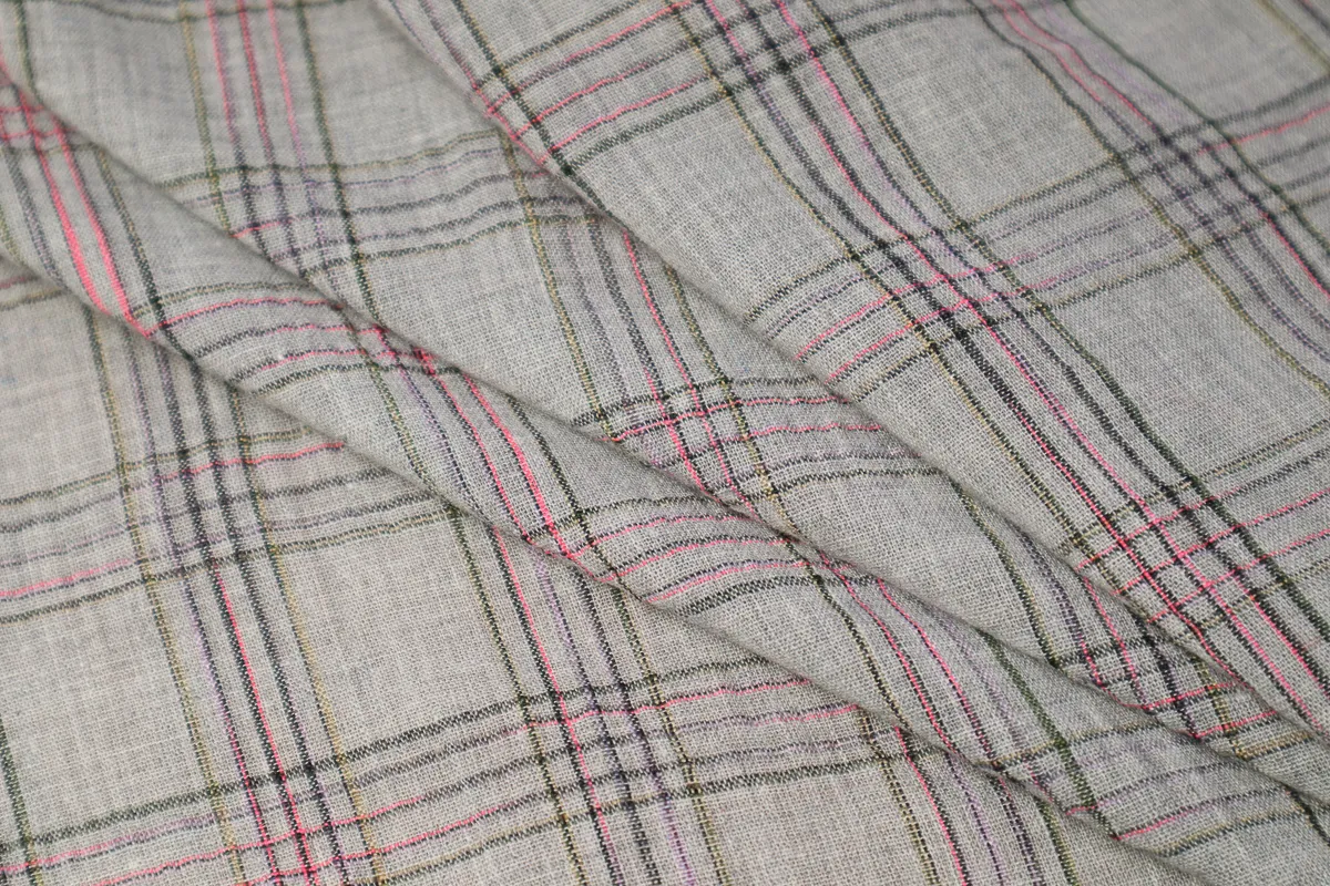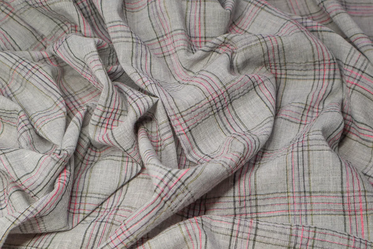 Ткань плательная клетка серо-розовый ш 1,4 (хлопок 35% пэ 65%)