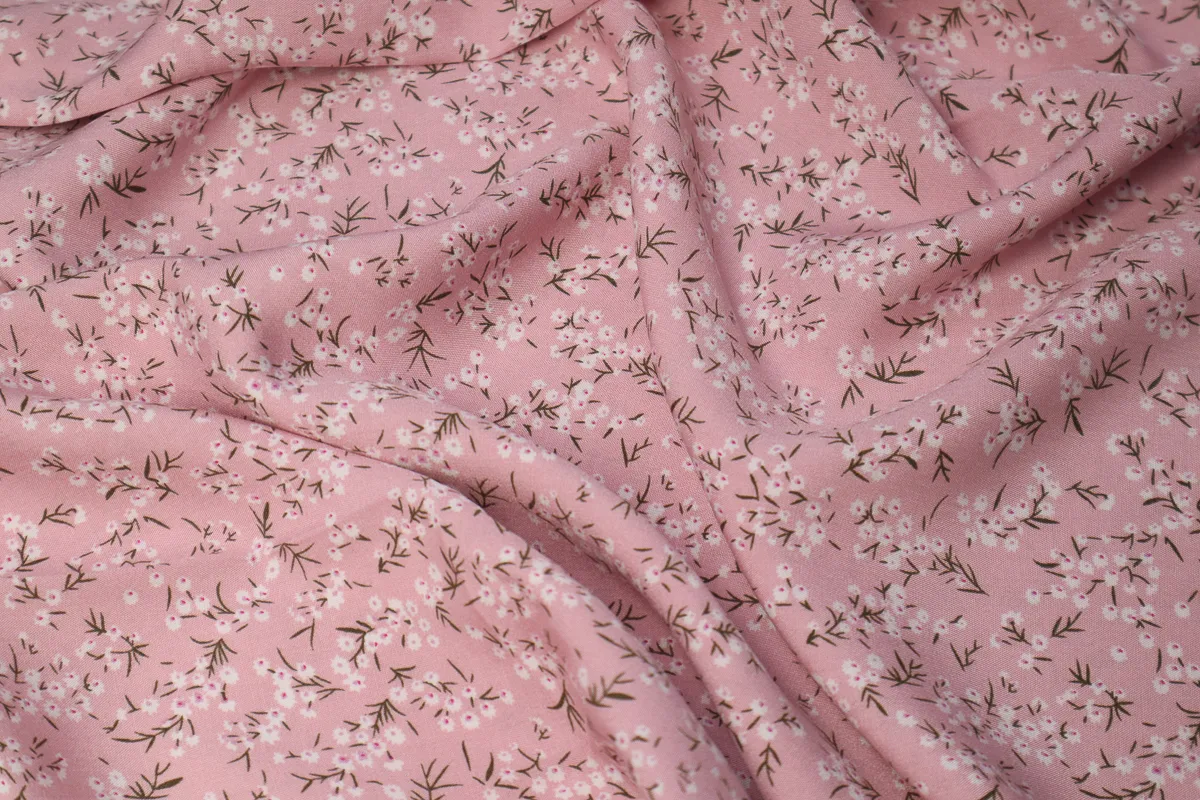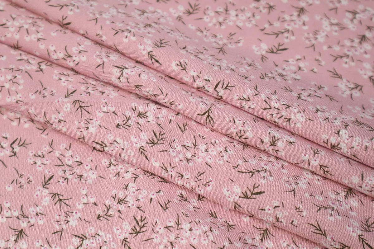 Ткань плательная ромашки св.розовый ш 1,5 (вискоза 100%)