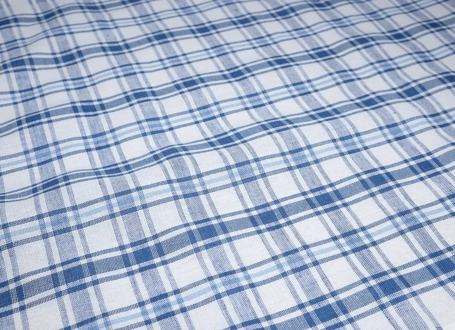 Ткань полотенечная смесовая клетка синий ш 0,5м (хлопок 70% лен 30%)