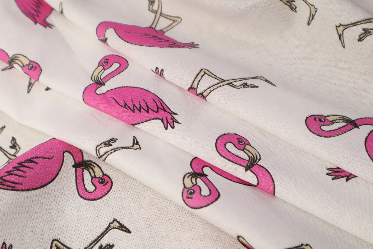 Ткань поплин детский Фламинго белый (хлопок 100%)