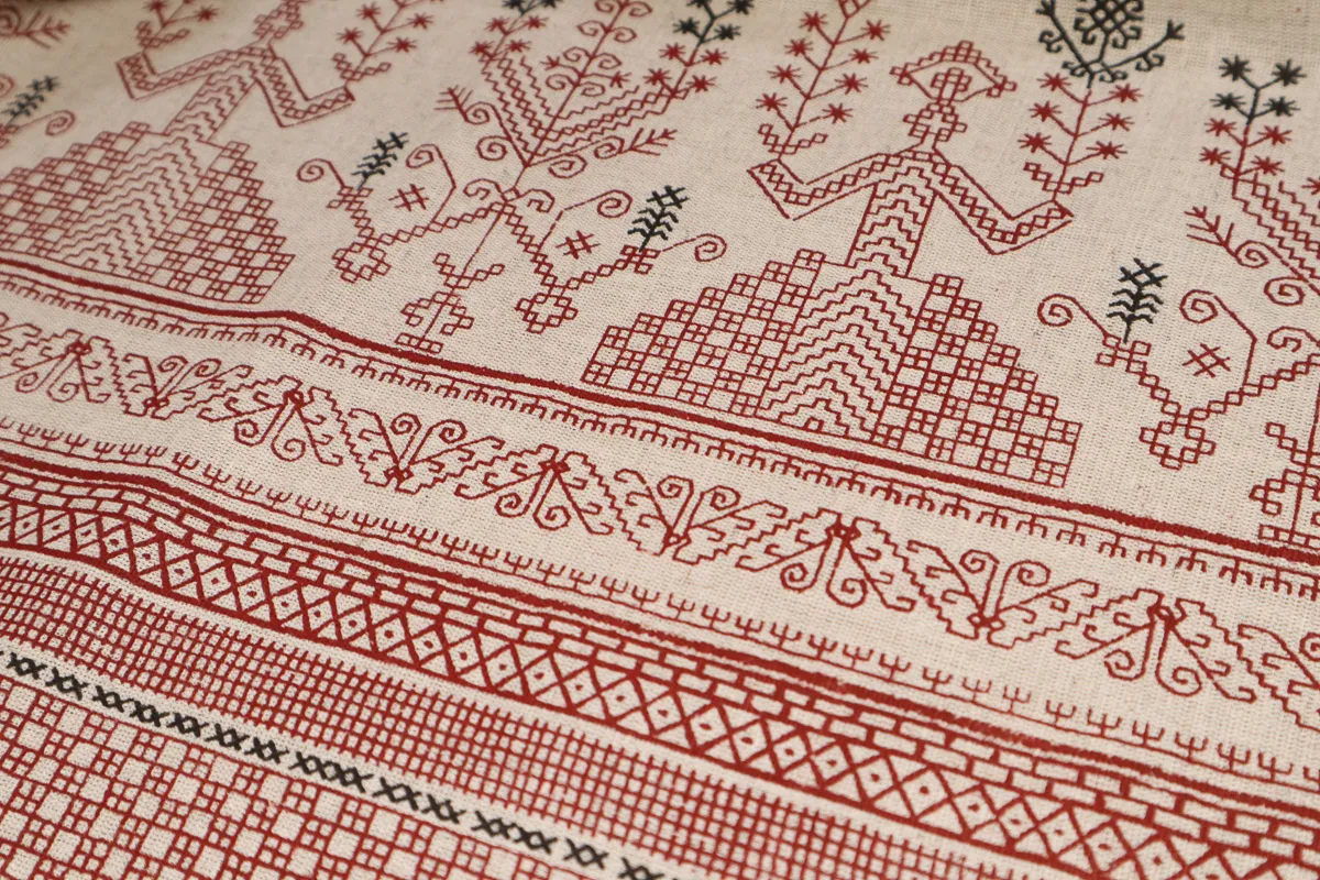 Ткань полулен набивная МАКОШЬ ш 1,5 (хлопок 70% лен 30%)