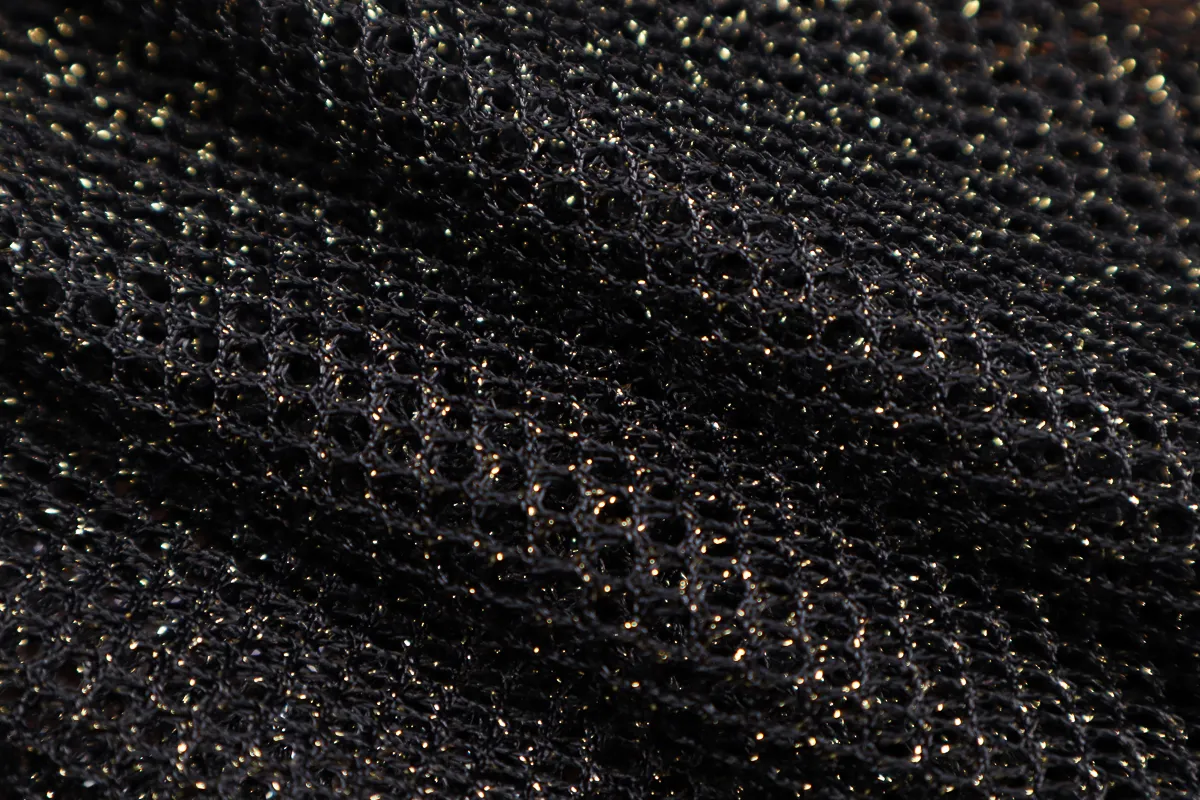 Ткань сетка плательный люрекс черный с золотом ш 1,6(пэ 100%)