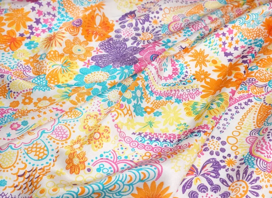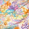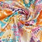 Ткань шелк плательный цветы разные желто-оранжево-сиреневый ш 1,5 (вискоза 50% шелк 50%)