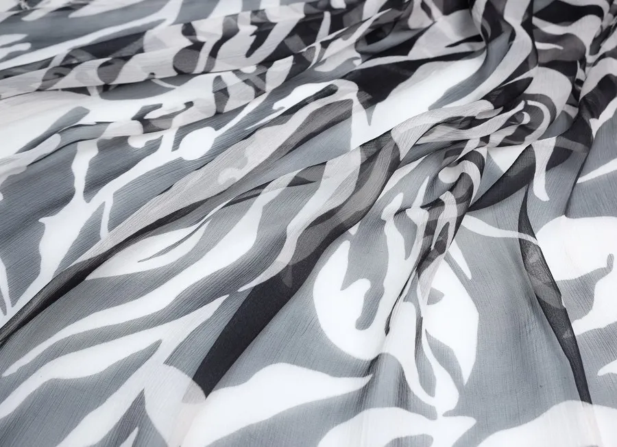 Ткань шифон с принтом зебра черно-молочный ш 1,5 (шелк 100%)