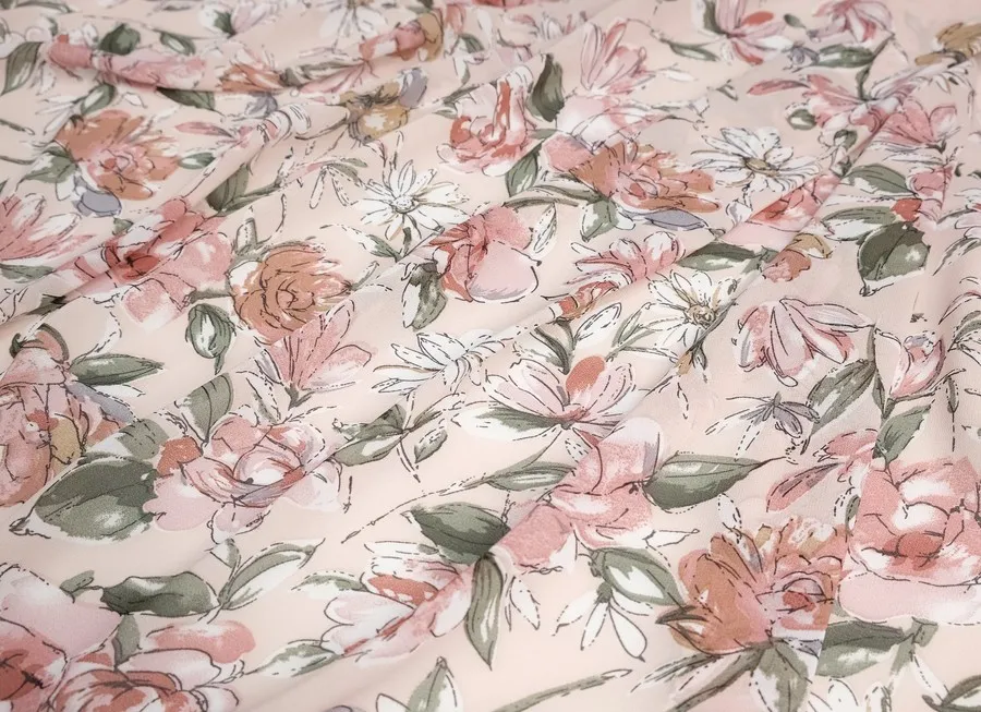 Ткань шифон цветы пудровый ш1,5 (пэ 100%)