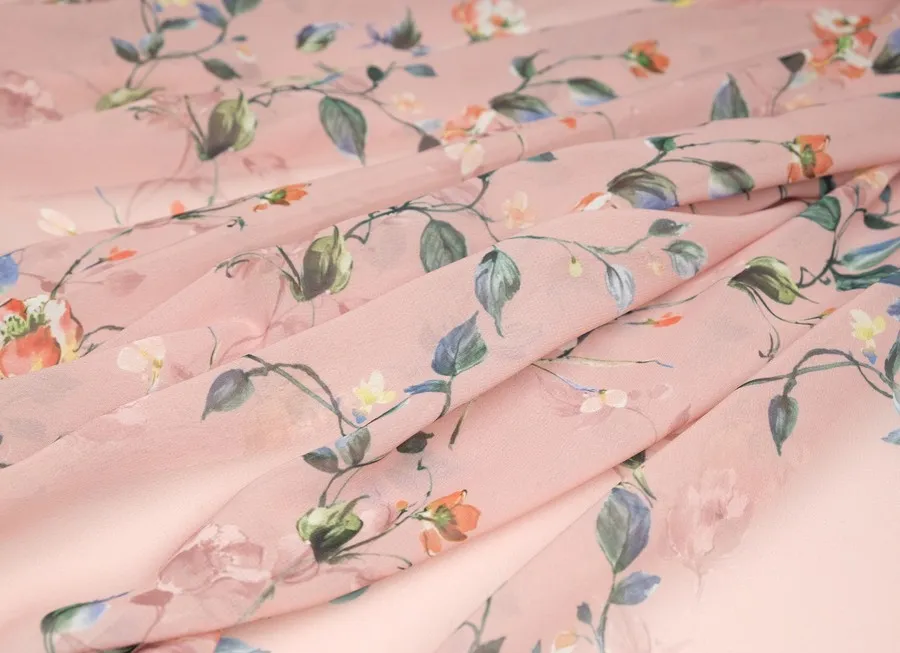 Ткань шифон цветы розовые ш1,5 (пэ 100%)