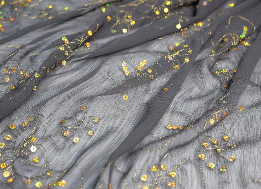 Ткань шифон вышивка с пайетками черный ш1,5 (пэ 100%)