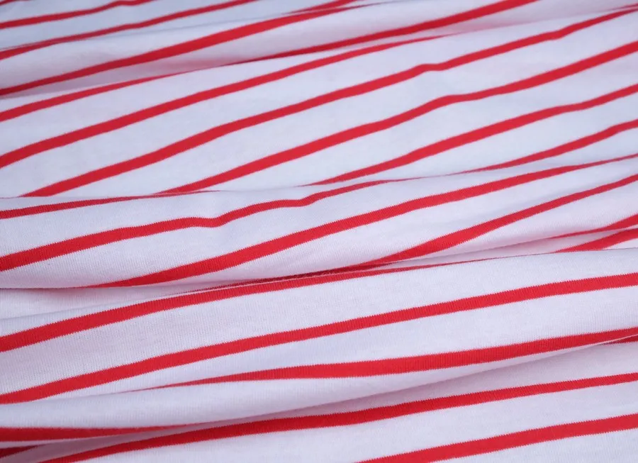 Ткань трикотаж полоска бело-красный ш 1,8 (хлопок 98% эл 2%)