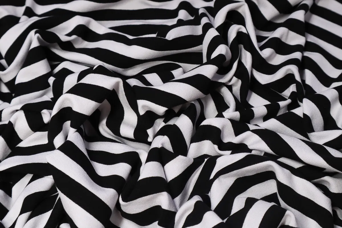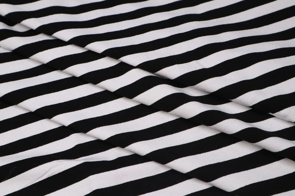 Ткань трикотаж полоска черно-белый ш 1,45 (вискоза 94% эл 4%,)