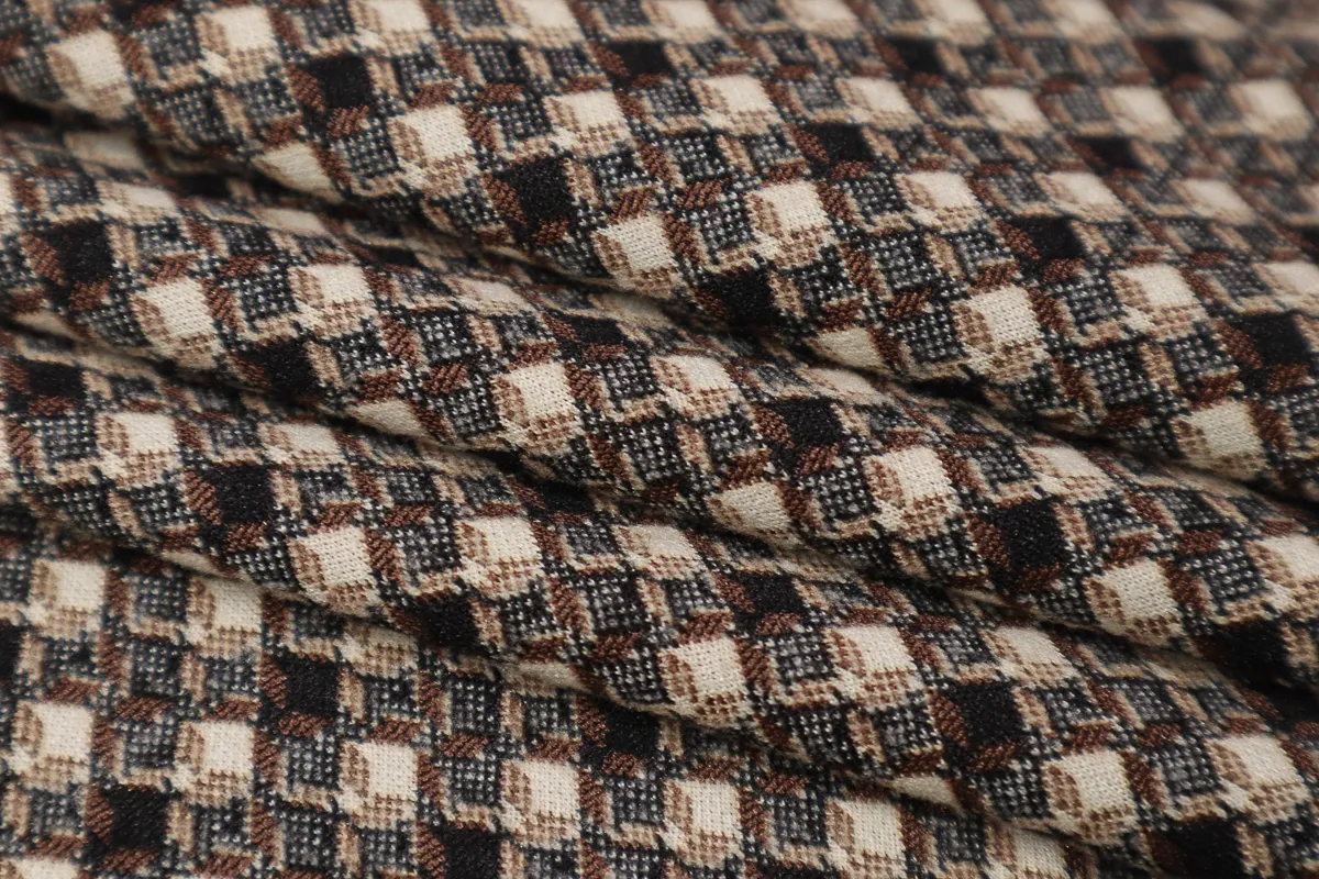 Ткань трикотаж жаккард бежево-коричневый ш 1,65 ( вискоза 17% пэ 80% эластан 3% )