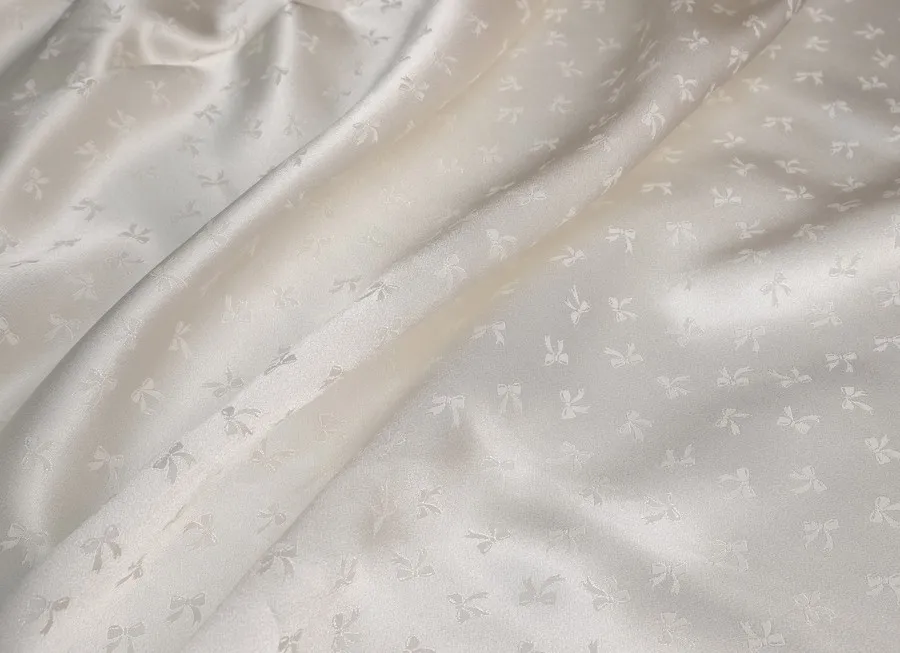 Ткань жаккард бантики молочный ш 1,1 (шелк 100%)