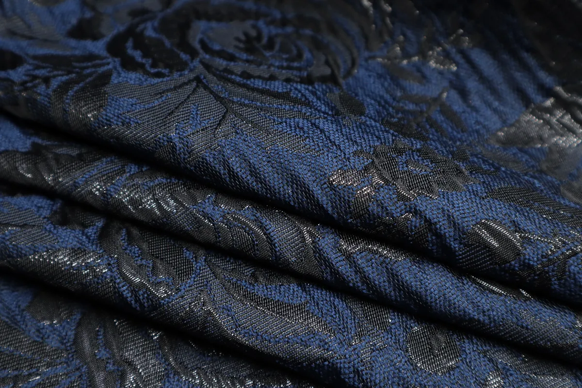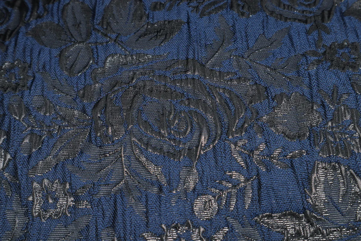 Ткань жаккард с принтом темно-синий ш 1,4 (пэ 74% мет.нить 26%)