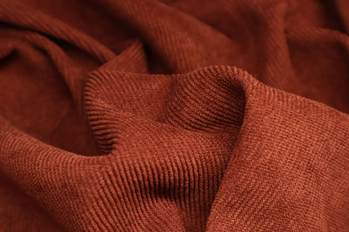 Вельвет однотон. рубчик мелкий рыжий ш 1,5 (пэ 97% эластан 3%)